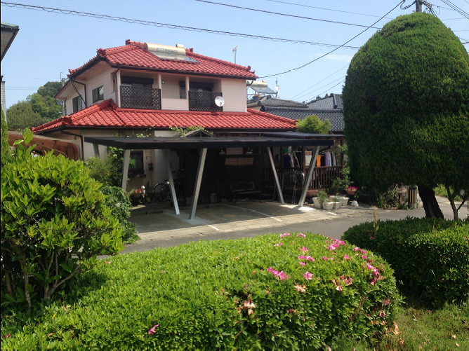 ②柱の数は、四隅に1本づつ合計4本設置するのをよく見ます。これだと、実際の駐車時や発進時にぶつけるケースが多いのではないでしょうか。しかし、今回のは2本しかありません。前方に柱がないため、ぶつける心配がずいぶん少なくて済みそうです。