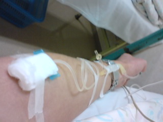 今、病院で点滴を受けています。